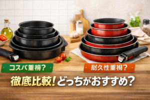 ティファールはチタン配合のアンリミテッドコーティングを採用しており、 こびりつきにくさが長持ちします。長期間使う前提ならティファールの方が安心です。 - 価格とコスパの考え方の違い